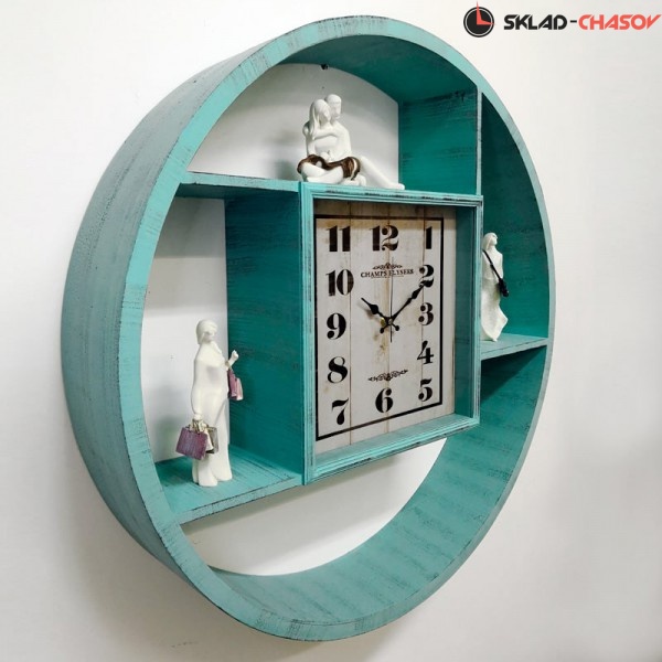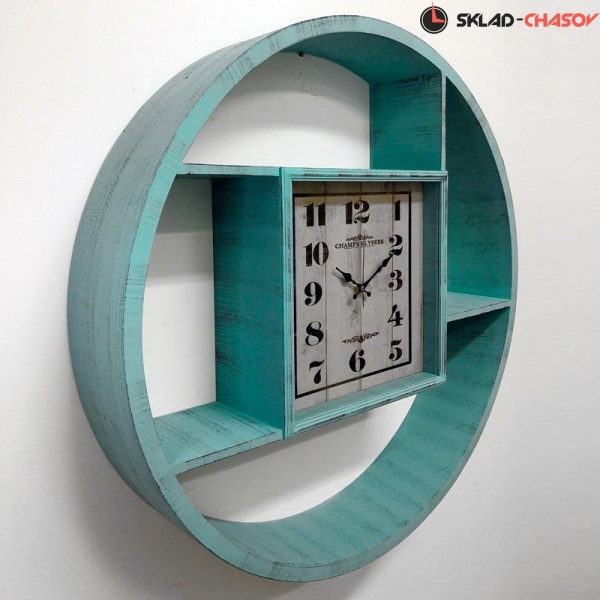 Настенные часы с полками GALAXY DA-001 Aquamarin Бирюзового цвета, имеют надежный бесшумный кварцевый механизм, работающий от батарейки типа АА (пальчиковые). Эта модель идеально подойдет для дома в гостиную комнату разных стилей.