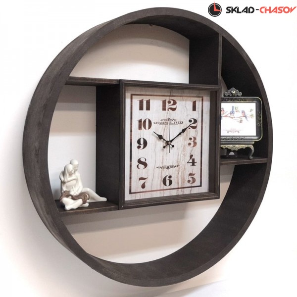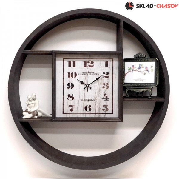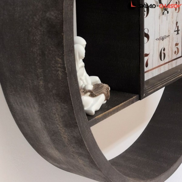 Часы необычные, имеют полочки для установки статуэток, фоторамок и сувениров.