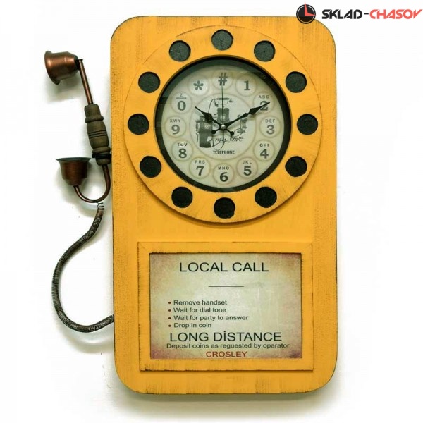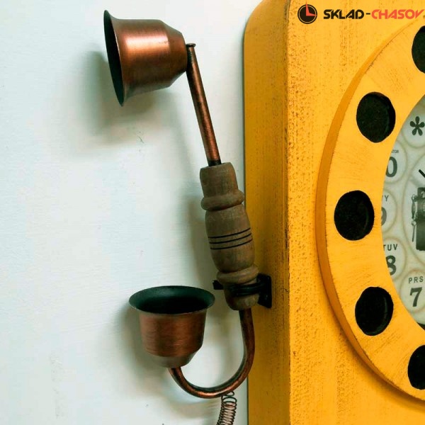 Настенные часы-телефон GALAXY DA-006 Yellow желтого цвета в виде старого настенного телефонного аппарата имеют надежный бесшумный кварцевый механизм, работающий от батарейки типа АА (пальчиковые). Эта модель идеально подойдет для дома в гостиную комнату разных стилей, включая под старину,а также для установки в офисе и салонах телефонных компаний. Это выгодно выделит компанию среди конкурентов. Возможно изготовление в других цветовых гаммах при заказ от 300 штук.