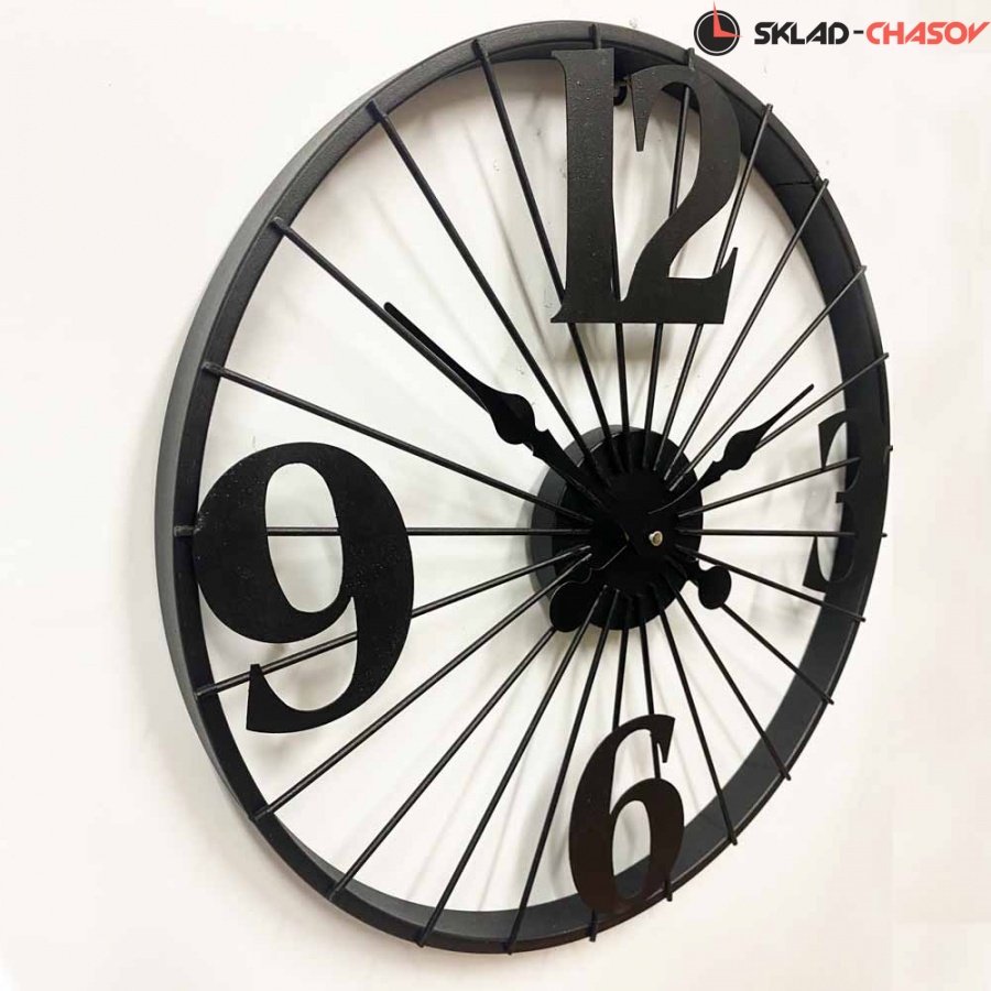 Настенные большие металлические часы DM-110 Black черного цвета имеют надежный бесшумный кварцевый механизм, работающий от батарейки типа АА (пальчиковые). Эта модель идеально подойдет для дома в гостиную комнату разных стилей.