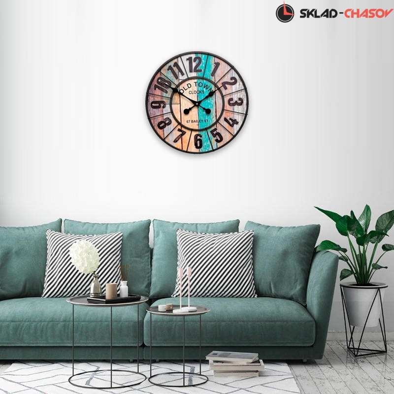 Настенные большие часы GALAXY DM-50-2 цвета мультиколор имеют надежный бесшумный кварцевый механизм, работающий от батарейки типа АА (пальчиковые). Эта модель идеально подойдет для дома в гостиную комнату разных стилей. Временные рамки обозначены арабскими цифрами. Стрелки открытые, стекла нет.