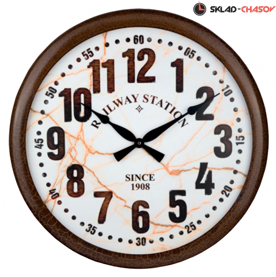 Настенные большие металлические часы GALAXY DM-750 коричневого цвета с эффектом старины имеют надежный бесшумный кварцевый механизм, работающий от батарейки типа АА (пальчиковые). Эта модель идеально подойдет для дома в гостиную комнату разных стилей. Временные рамки обозначены арабскими цифрами. Стрелки под стеклом.