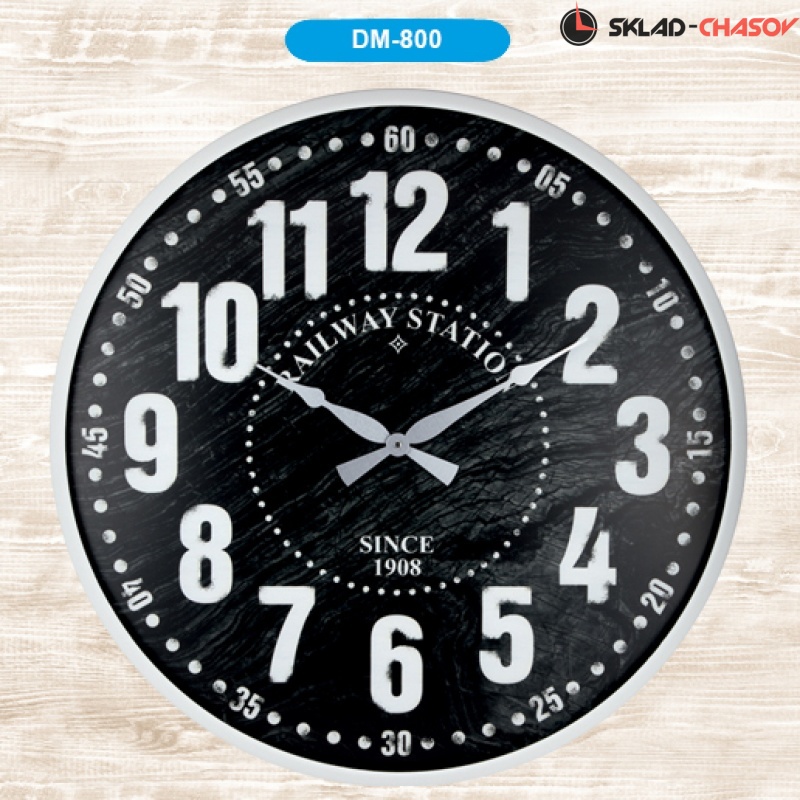 Настенные большие металлические часы GALAXY DM-800 черного цвета имеют надежный бесшумный кварцевый механизм, работающий от батарейки типа АА (пальчиковые). Эта модель идеально подойдет для дома в гостиную комнату разных стилей. Временные рамки обозначены арабскими цифрами. Стрелки под стеклом.