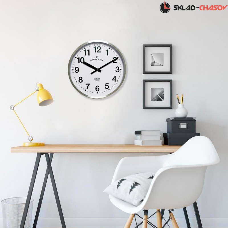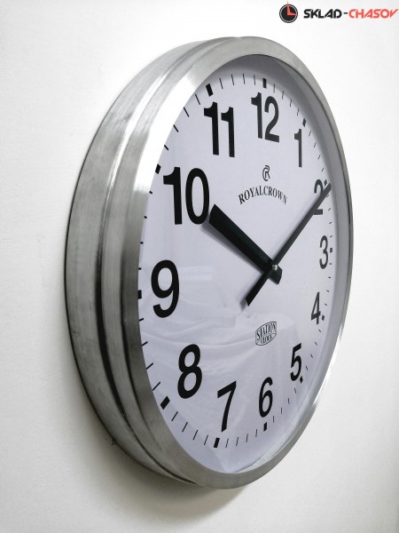 Настенные часы GALAXY M-2009 серебряного цвета большого диаметра имеют надежный бесшумный кварцевый механизм, работающий от батарейки типа АА (пальчиковые). Эта модель идеально подойдет для дома в гостиную комнату, для офиса, в торговые залы, вокзалы, аптеки, рестораны, кафе и другие большие помещения. Временные рамки обозначены арабскими цифрами.