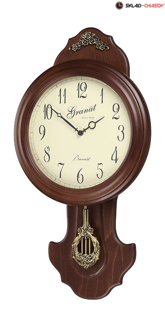 Настенные часы с маятником марки Granat серия Baccart, в деревянном корпусе с элементами металлосодержащего композита "художественной чеканки".