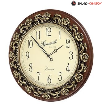 Большие настенные часы марки Granat серия Baccart GB16325, в деревянном корпусе с элементами металлосодержащего композита "художественной чеканки".