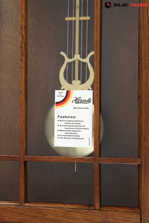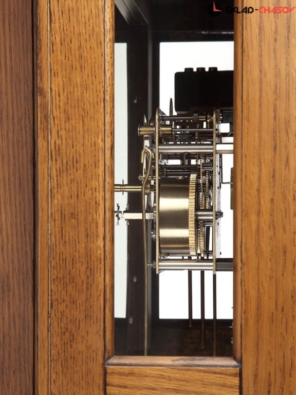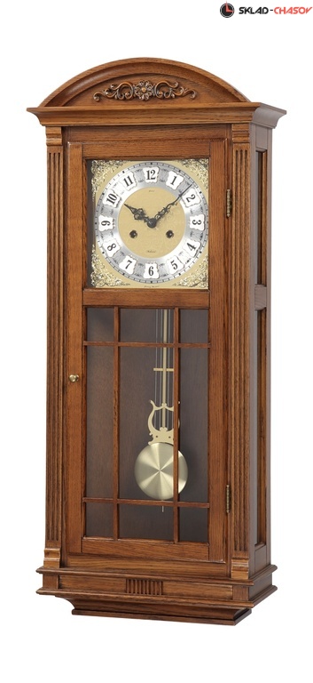 Настенные часы с маятником и боем в деревянном корпусе с немецким механизмом Hermle М-50530-54/ Корпус настенных часов сделан из дуба и покрыт лаком темного цвета