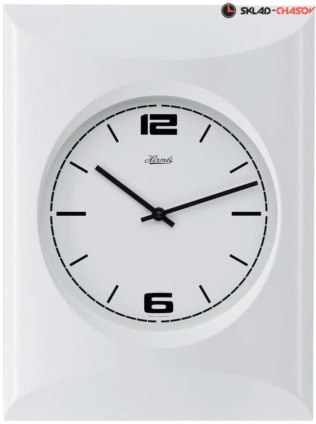 Современные настенные часы выполнены из дерева и покрыты белым лаком с черными стрелками и метками