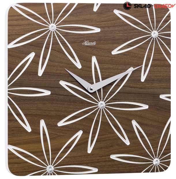 Кварцевый механизм не требующий подзавода. Циферблат без разметок из массива дерева. Украшен белыми цветами со стразами.