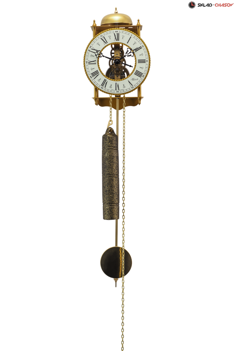 Механические настенные часы с пружинным подзаводом на 8 дней. Открытый скелетонизированный механизм. Регулятор хода — маятник.