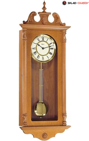 Кварцевый механизм не требующий подзавода. Автоматическое и ручное отключение боя в ночное время. Корпус выполнен из натурального дерева (дуб).Маятник золотистый отполированный. Циферблат белого цвета, временные рамки обозначены большими римскими цифрами.