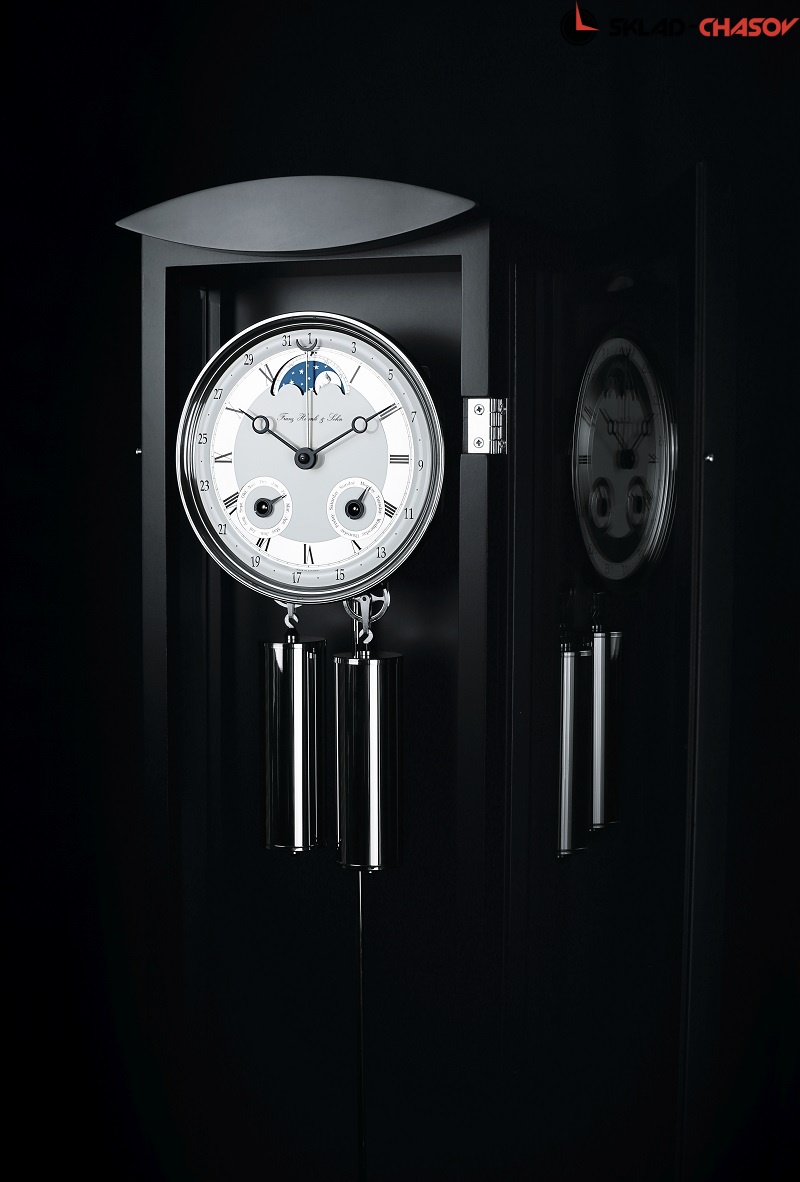Настенные часы Hermle 70650-740058 с механическим механизмом с тросовым подвесом гирь с заводом . Бой:почасовой и получасовой колоколообразный гонг. Ночной режим: ручное отключение боя. 8 дневный запас хода.Корпус изготовлен из дерева.Циферблат: с римскими цифрами, отдельными стрелочными указателями даты, дня и месяца.Над циферблатом расположен механизм, демонстрирующий фазы Луны.