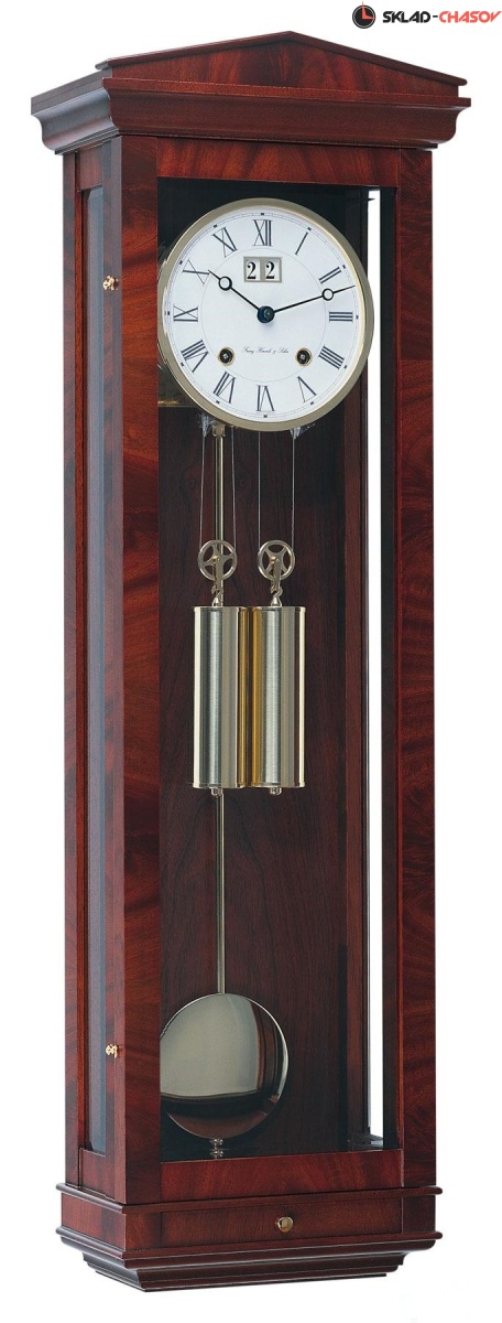 Настенные часы механические Hermle 70899-070058 с маятником и боем. Механические настенные часы с пружинным подзаводом на 8 дней. Почасовой и получасовой бой. Маятник. Ручное отключение мелодии и боя, завод ключом. Циферблат белого цвета с контрастными стрелками, римскими цифрами. Часы имеют ящичек для хранения заводного ключа. Индикация даты -календарь в верхней части циферблата. Характеристики часов часов Hermle 70899-070058: Размер часов: 840x265х145 мм. Материал: массив дерева (красное дерево). Производство: Германия. Гарантия: 2 года.