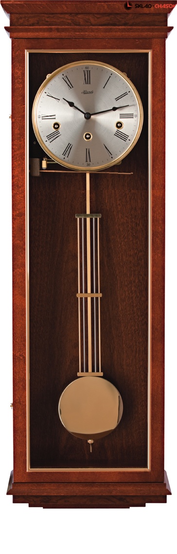 Механические настенные часы с пружинным подзаводом на 8 дней. Мелодия Westminster каждую четверть часа, каждый час бой. Циферблат серебристого цвета с римскими цифрами.