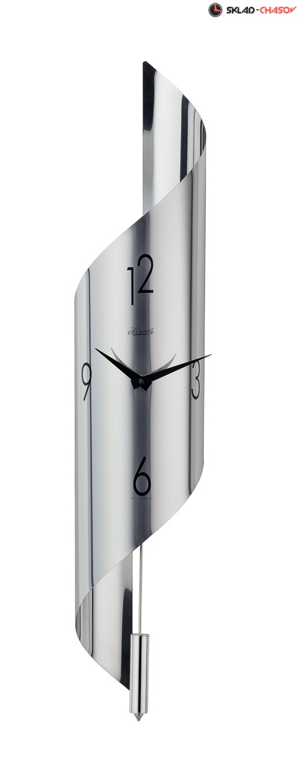 Современные настенные часы в стиле Hi-Tech с маятником. Корпус из стали, циферблат с арабскими цифрами. Механизм бесшумный.