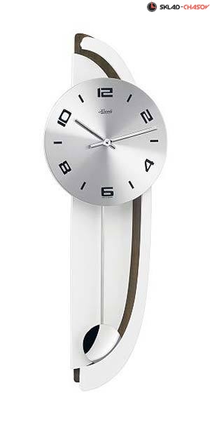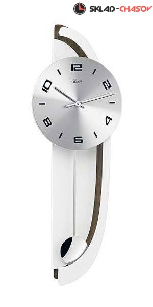 Кварцевый механизм не требующий подзавода.Современные настенные часы комбинированы деревом (Орех) и металлом.Стиль-Хай тек. Металлический циферблат с арабскими цифрами, чередующиеся с маркерами часа. Основные стрелки стальные. Центральная секундная стрелка отсутствует.Металлический дисковый маятник.
