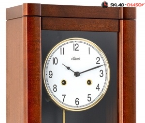 Механические настенные часы с пружинным подзаводом на 8 дней. Звуковой сигнал: спиральный гонг, получасовой бой - 1 удар, каждый час удары по количеству полных часов, мелодия Westminster каждую четверть часа. Механизм с позолоченным маятником. Регулятор-маятник, тяга-пружина. Ручное отключение боя. Циферблат белого цвета с контрастными стрелками, арабскими цифрами.