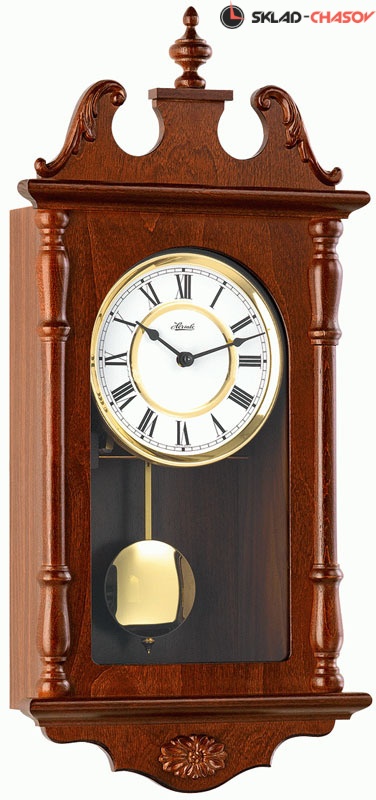 Кварцевый механизм не требующий подзавода. Часы в классическом корпусе из массива дерева, украшенном резьбой ручной работы. Звуковой сигнал: получасовой и почасовой бой, мелодия Westminster каждую четверть часа. Настраиваемое отключение на ночь. Регулировка громкости мелодии. Регулятор - маятник. Циферблат белого цвета с контрастными стрелками, римскими цифрами.