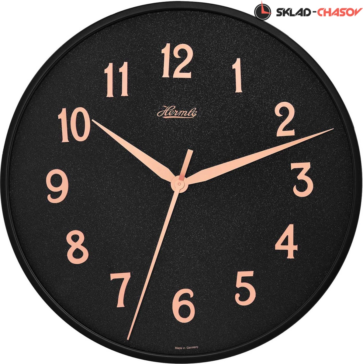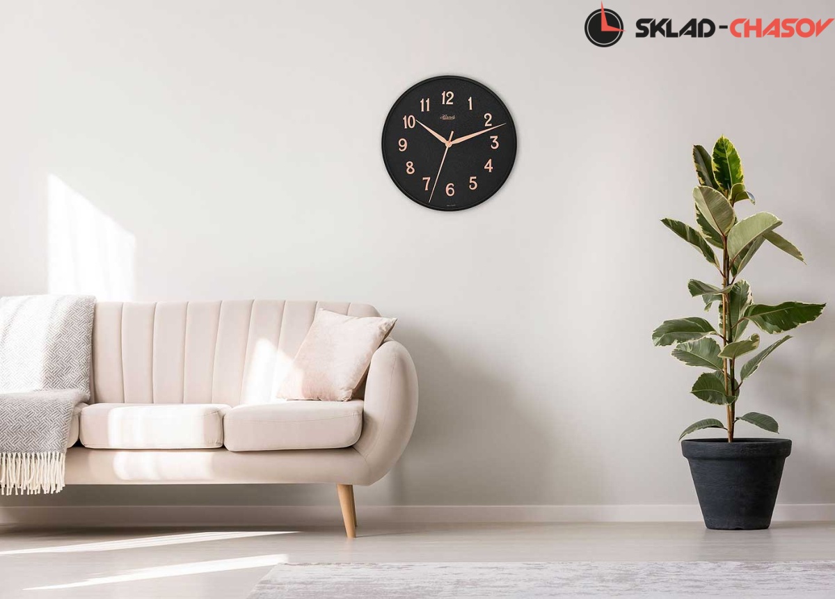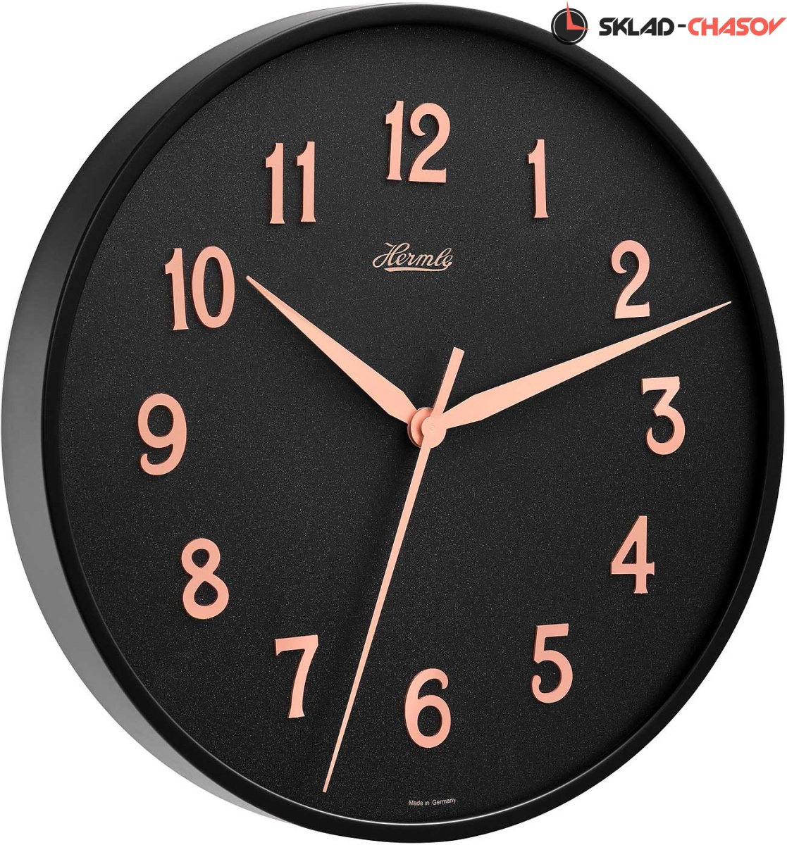 Черный циферблат с арабскими цифрами цвета розового золота.
