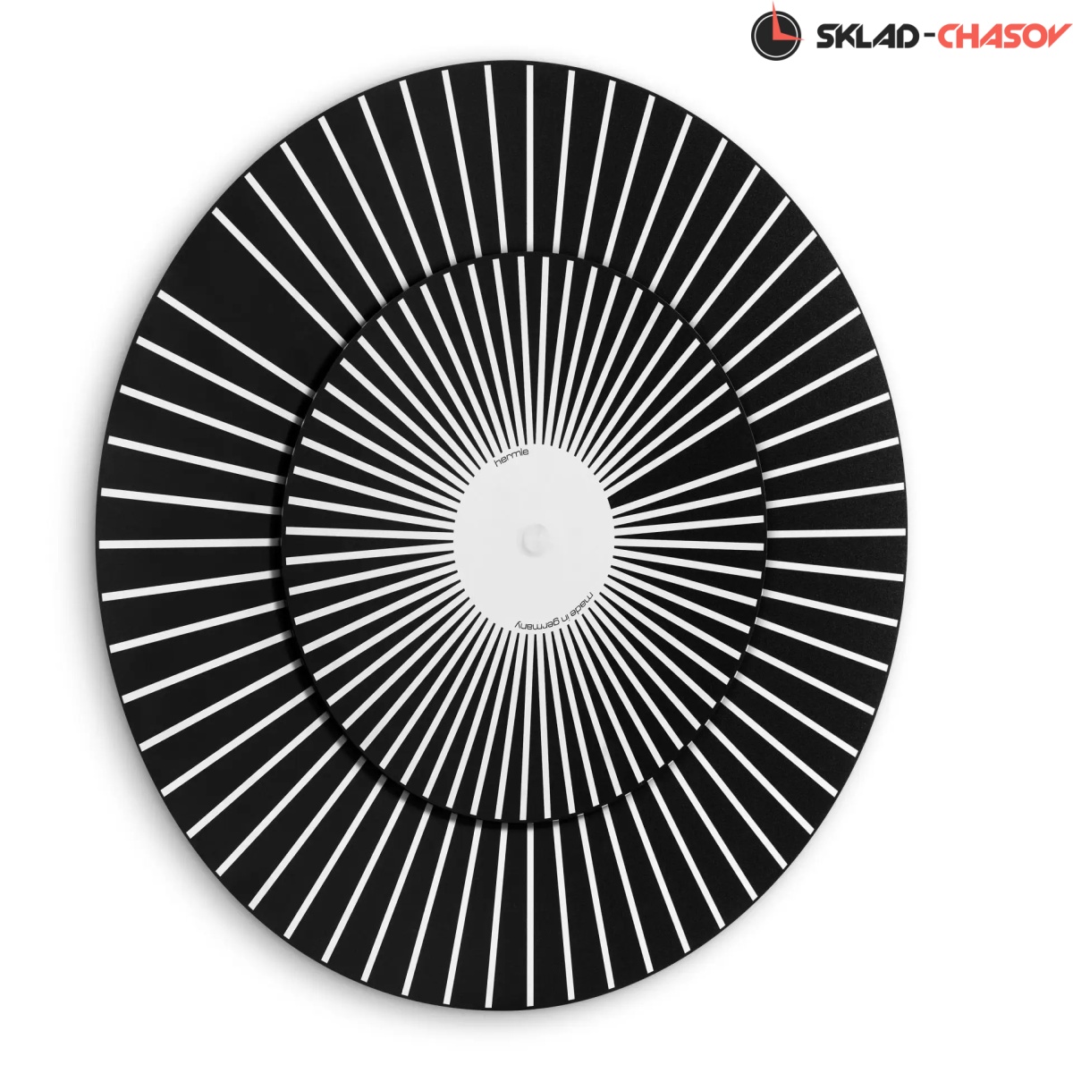 Настенные часы с 118 стрелками от компании Reichenbach am Heuberg Компания Hermle представляет новые настенные часы, которые впечатляют своим особенным внешним видом. Внушительный диаметр 500 мм придает дизайнерским настенным часам впечатляющий вид и делает их стильным предметом интерьера. Часы состоят из двух алюминиевых пластин, каждая из которых вращается вокруг своей оси. Как на внешней, так и на внутренней пластинах имеется 59 стрелок. Между двумя этими стрелками на обеих пластинах есть большие промежутки, указывающие на час на внешней пластине и минуту на внутренней пластине. Это позволяет легко считывать время даже без цифр. Настенные часы с 118 стрелками украсят любое жилое или рабочее пространство и привлекут внимание. Эти настенные часы впечатляют своим авангардным дизайном и на 100% изготовлены в Райхенбахе-на-Хойберге. 50 cm