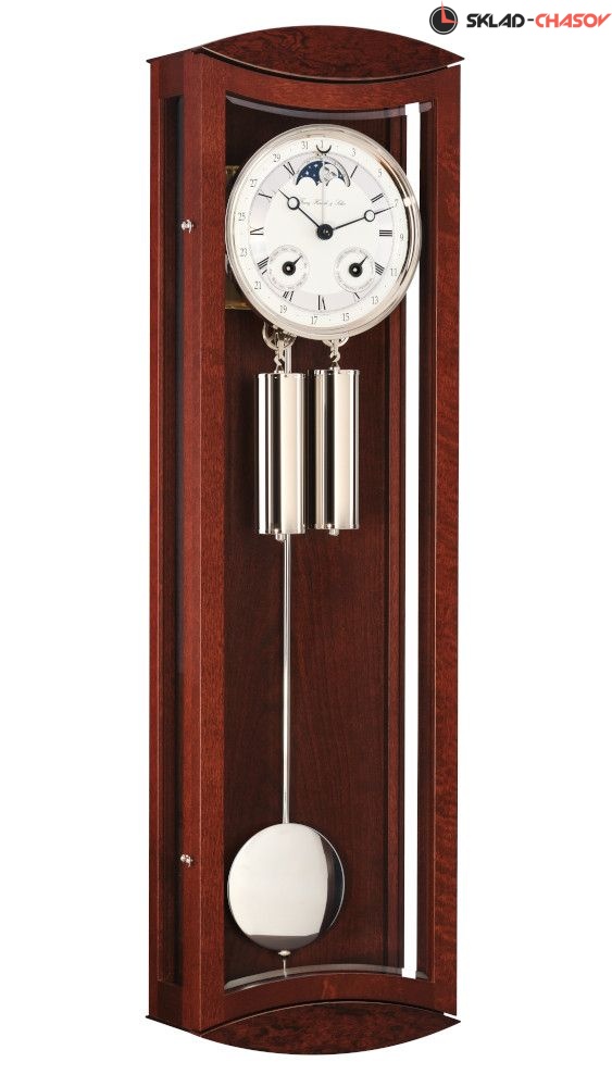 Классический дизайн с максимально возможным качеством исполнения корпуса и механизма. Благодаря тросовому механизму Hermle (W0058) с тонкими тросовыми шкивами и гирьками, изысканному циферблату с крупным кольцом для обозначения даты, месяца и дня недели, а также классической фазе луны, часы Regulateur являются одним из лучших изделий в коллекции Hermle Regulateur. Получасовой удар в гонг. Особые характеристики: Мелодия, фаза луны 78.5 x 22 x 11.5 cm