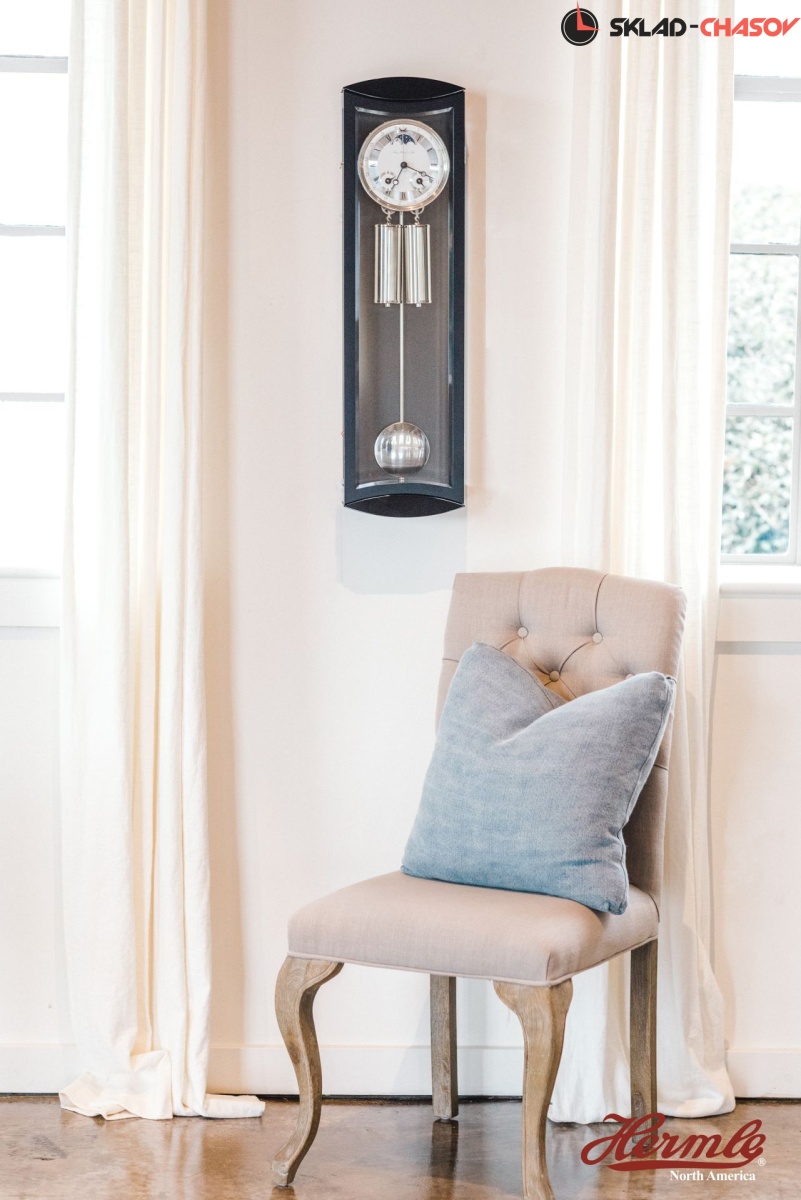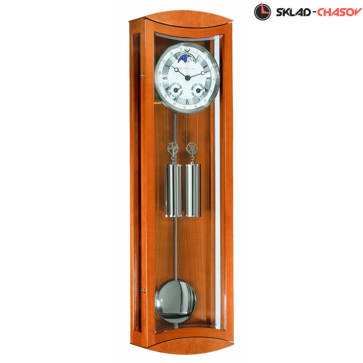 Благодаря тросовому механизму Hermle (W0058) с тонкими тросовыми шкивами и гирьками, изысканному циферблату с крупным кольцом для обозначения даты, месяца и дня недели, а также классической фазе луны, часы Regulateur являются одним из лучших изделий в коллекции Hermle Regulateur. Получасовой удар в гонг.