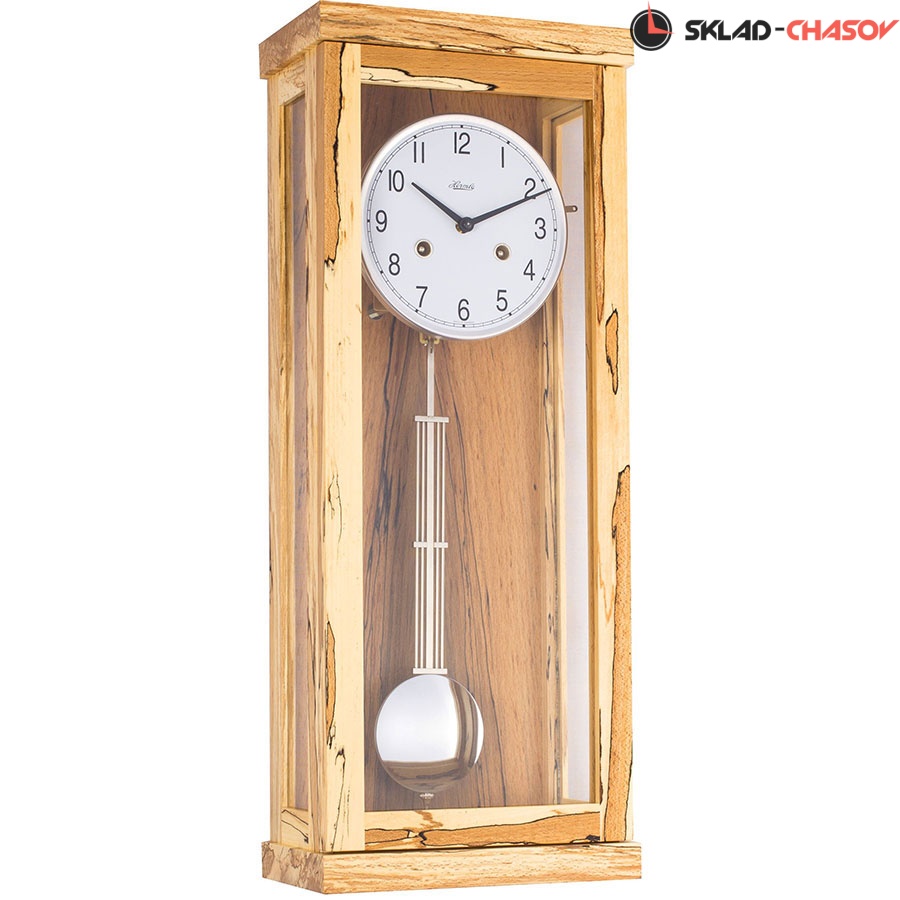 Длительность завода 14 дней; бой по спиральному гонгу каждые 30 минут. Регулятор - маятник. Возможность ручного отключения боя на ночь. Материал: дерево. Расцветка: светлое дерево (ледяной бук). Размер: 57x22,5x13 см/