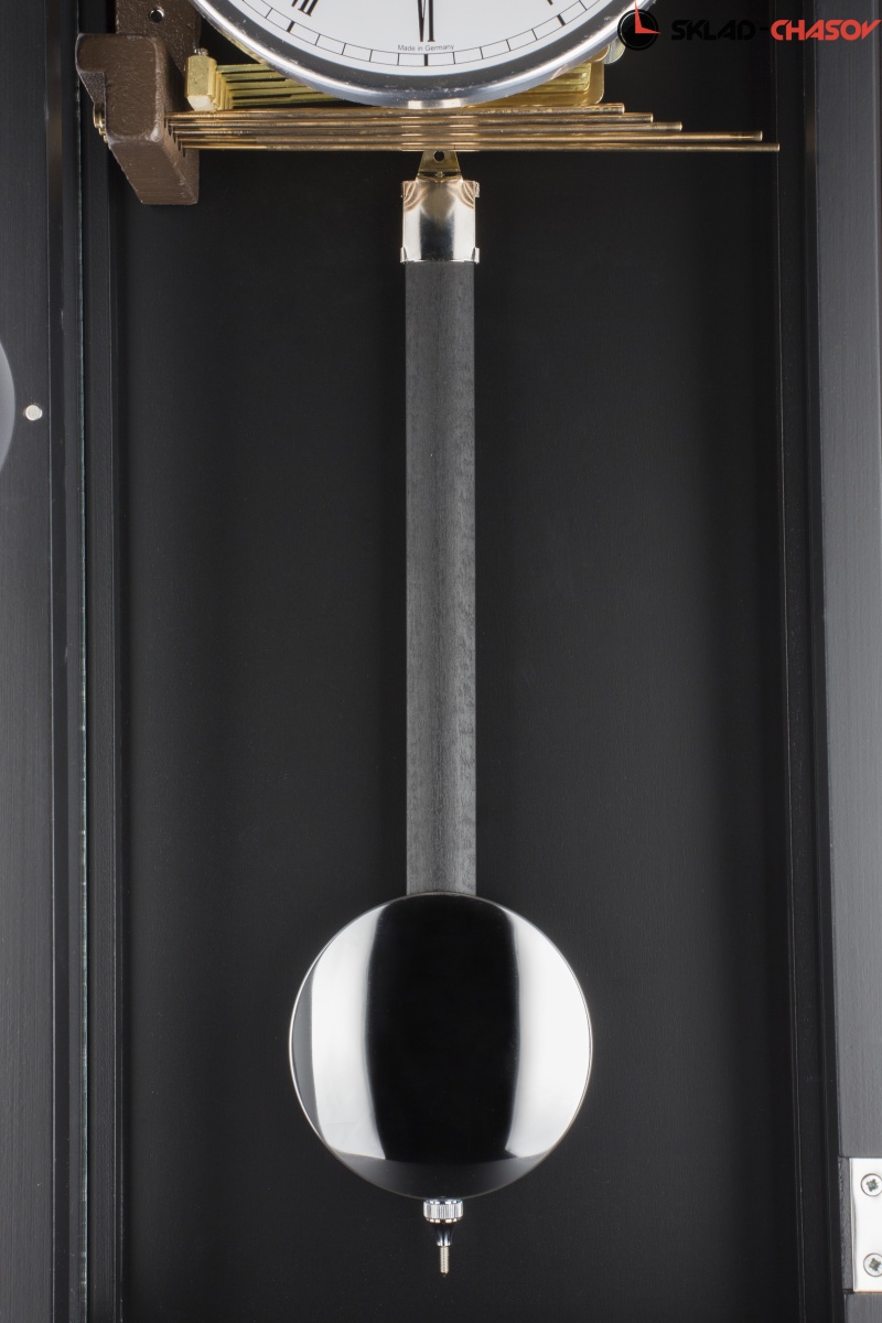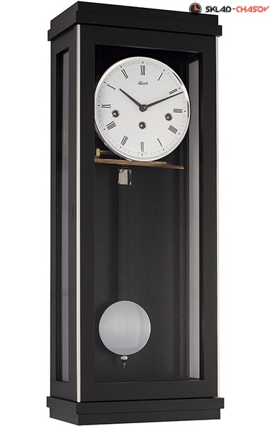 НГастенные часы с маятником, механические , из массива дерева. Цвет- черный, стекла на передней и боковых поверхностях. Часовой бой, мелодия каждые 1/4 часа, 8-ми дневный завод. Автоматическое отключение боя с 21:45 до 07:00, размер 58х22,5х13 см
