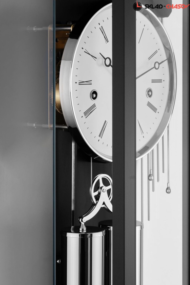 Дизайн новых регуляторов 71009-740351 из черного никеля сочетает в себе сдержанно элегантные классические элементы с филигранной конструкцией корпуса, что соответствует времени. Регулятор оснащен секундным индикатором. Большие стеклянные поверхности в конструкции обеспечивают хороший обзор ценных механических компонентов механизма W0351-830066301 (ударный механизм Westminster 4/4 с автоматическим ночным отключением). Дверца оснащена магнитной защелкой. Благодаря встроенному отделению для ключей и высокому качеству и точности изготовления эти часы будут представлять непреходящую ценность для многих поколений. Изготовлено вручную в южной Германии с высокой точностью из местного массива дерева.