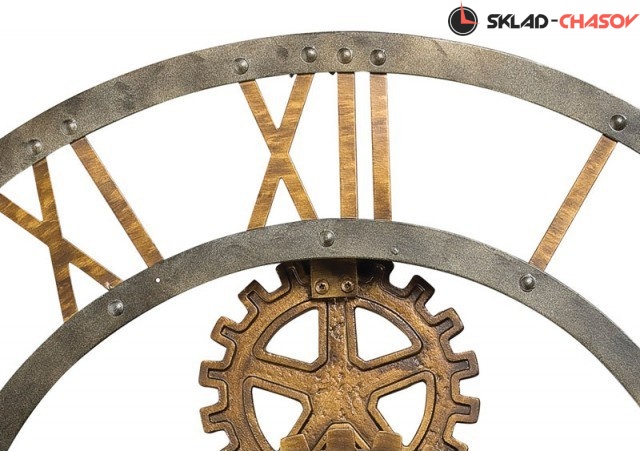 Металлические галерейные часы диаметром 76,2 см. Римские цифры и литые металлические механизмы отделаны под «антик».