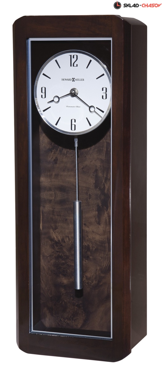 Настенные часы Howard Miller 625-583 Aaron (Аарон). Суперглянцевый корпус этих настенных часов Howard Miller 625-583 отделан в цвете «Черный Кофе» (Black Coffee) и гармонично контрастирует с задней панелью из древесины с наплывами.Плоское стекло с зеркальными полированными краями обрамляет циферблат и маятник.