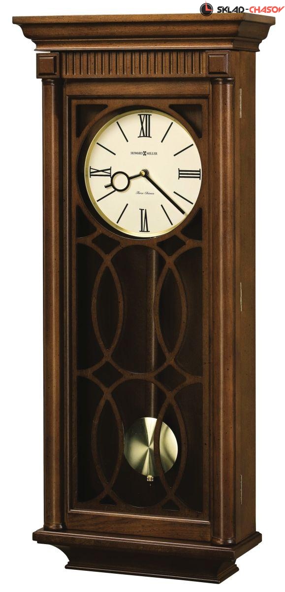 Эти деревянные настенные часы с плоским фронтоном украшают точеные колонны, декоративный молдинг в верхней части корпуса и уникальная резная фигурная решетка поверх стекла дверцы.