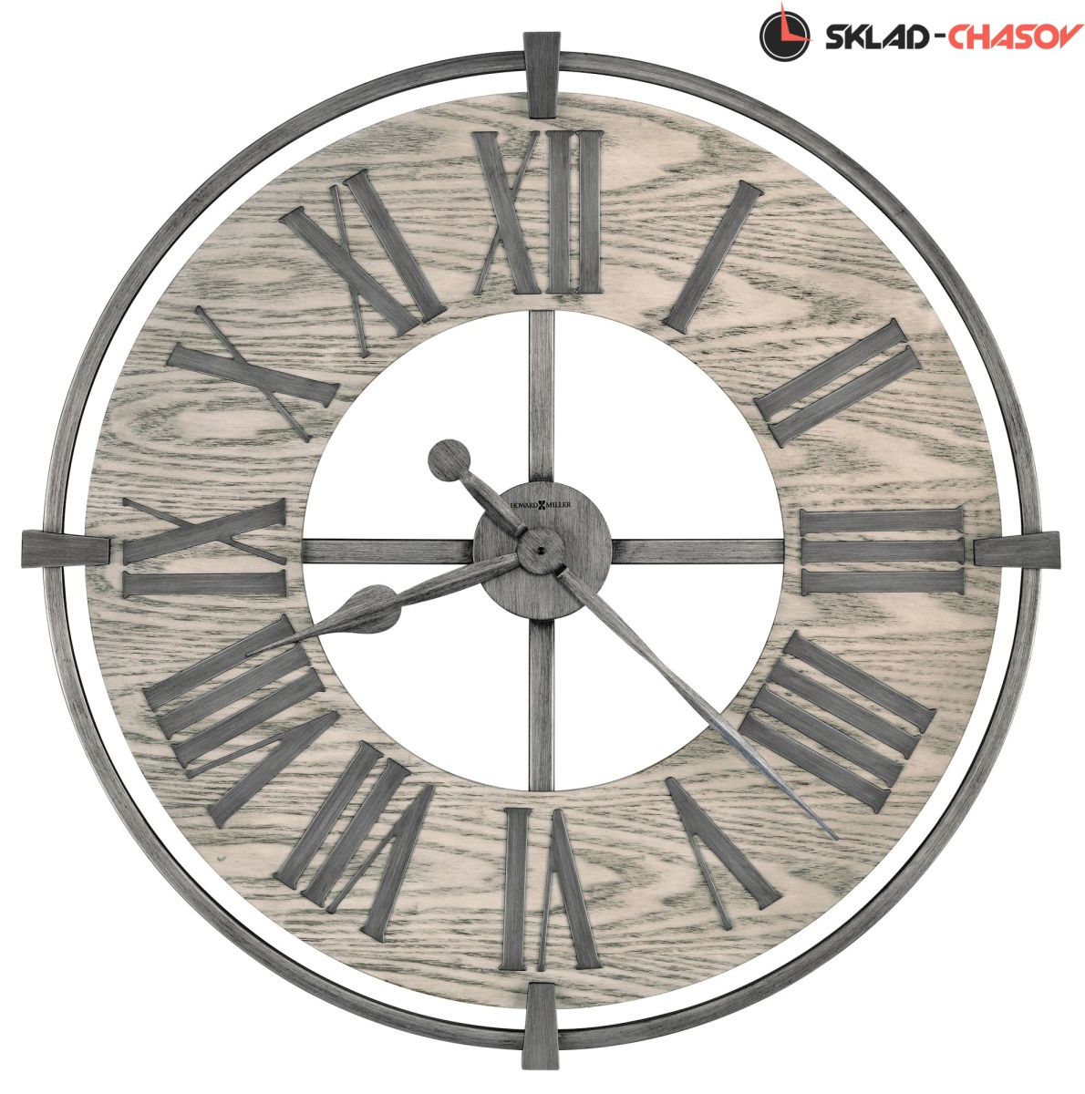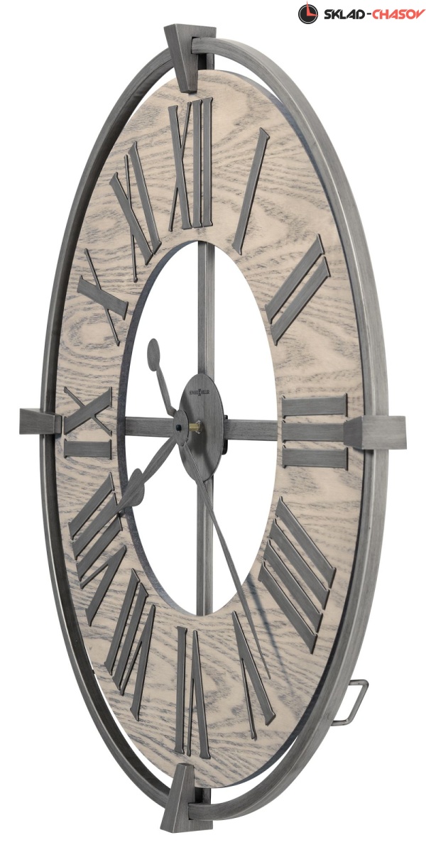 Материалы с прекрасной отделкой позволили создать эти большие настенные часы. Эта модель сочетает в себе кованный металлический корпус с отделкой под состаренное серебро и шпонированый циферблат с отделкой в тепло-сером цвете.
