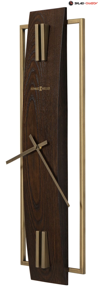 Циферблат данной модели состоит из 2-х объемных металлических индексов на положении 6-ти и 12-ти часов, которые наложены деревянное основание. Часовые индексы и металлические стрелки выполнены в прямоугольной форме отделаны под состаренную латунь, чем прекрасно дополняют внешний вид часов.