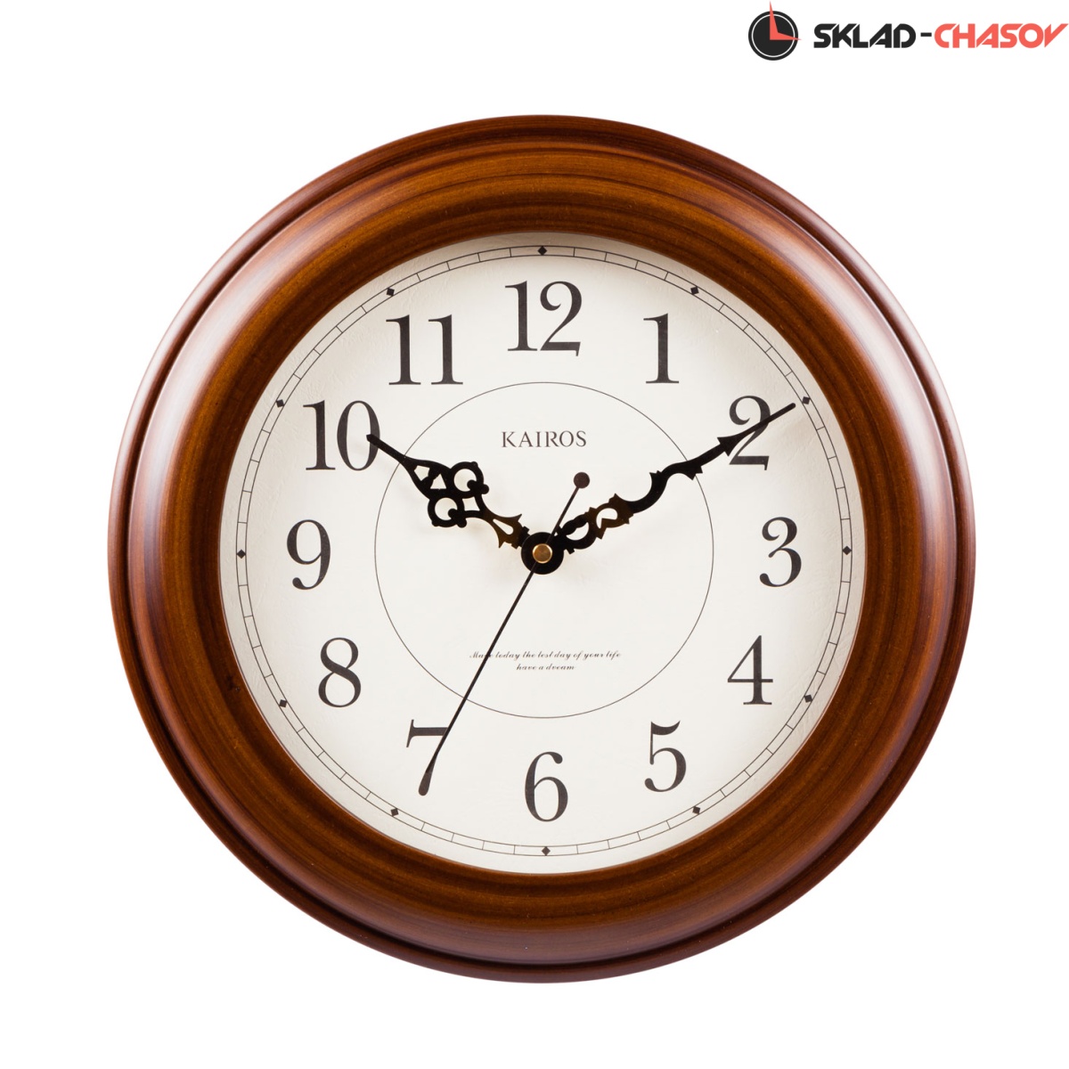 Настенные часы из МДФ с выпуклым стеклом, выполненные в нескольких оттенках коричневого цвета: коричневый, светло-коричневый, темно-коричневый.