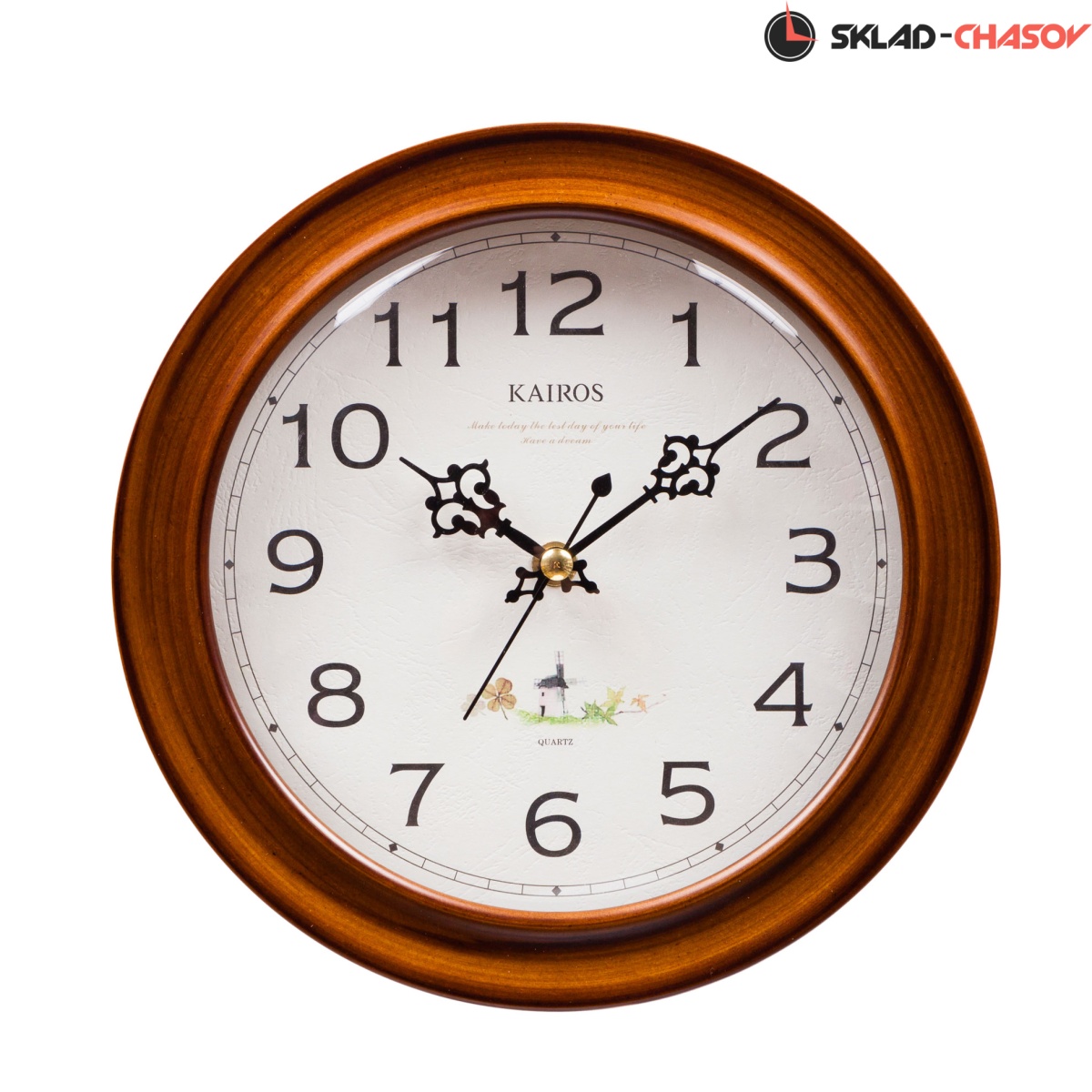 Настенные часы из МДФ с выпуклым стеклом, выполненные в нескольких оттенках коричневого цвета: коричневый, светло-коричневый, темно-коричневый.