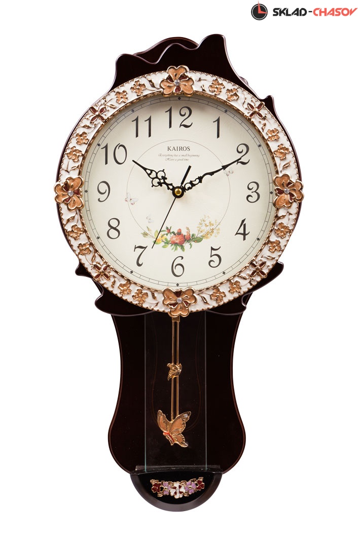 Kairos WD-803 - красивые интерьерные настенные часы, оснащены кварцевым механизмом с плавным бесшумным ходом - он отличается точностью, надежностью, не боится ударов, не требует подзавода. Качественный корпус из MDF дополнен металлическими вставками - эти природные материалы прослужат Вам долгие годы и сохранят свой первоначальный вид. Временные рамки обозначены большими арабскими цифрами - Вы с легкостью определите текущее время. На циферблате полноцветное изображение цветов. Характерной особенностью этой модели является раскачивающийся маятник (не влияет на ход часов). Бой и мелодия отсутствуют - ничто не нарушит тишину в Вашем доме. Хорошо подойдут под классический интерьер, в гостиную, а так же в офис деловой и успешной женщины.