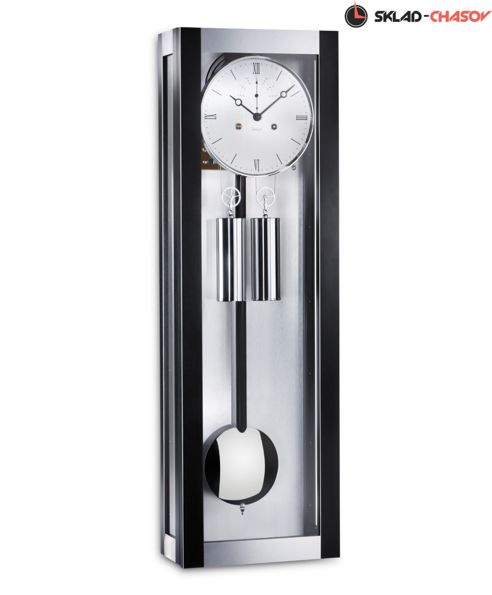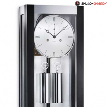 Настенные часы Kieninger 2175-96-01.Механизм механический с тросовым подвесом гирь, калибр PS055.Механизм с подпитывающей энергией . Корпус: Полированный вручную массив, алюминий.Циферблат: Диаметром 20 см cepeбристого цвета, стрелки в стиле Breguet, Римские цифры.Маятник: Хромированный полированный .Звуковой сигнал: Бим-Бом. Ночной режим: Автоматическое отключение боя c 22.00 до 7.15 ч. (патент Kieninger).Большая секундная стрелка вынесена на дополнительный циферблат.Автоматическая регулировка равномерности хода.