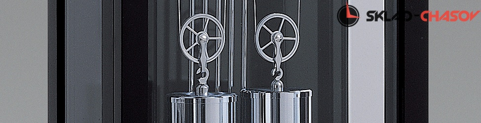 Настенные часы механические Kieninger 2547-96-02 c маятником и боем. Корпус часов с глянцевой отделкой рояльным лаком и полированными стальными акцентами в фронтоне и основании корпуса. Все стекла корпуса с огранкой. Все видимые элементы часов хромированные.Звуковой сигнал: бим-бом, бой получасовой и каждый час по количеству полных часов. Спиральный гонг.Механизм механический с тросовым подвесом гирь, калибр PS064. Автоматическое отключение боя c 22.00 до 7.15 ч. (патент Kieninger). Циферблат уникальный посеребренный диаметром 18 см с открытым анкером, с арабскими цифрами. Маятник (полированный)- регулятор, тяга-трос. Длительность завода 8 дней. Автоматическая регулировка равномерности хода (патент Kieninger). Секундная стрелка вынесена на дополнительный циферблат.