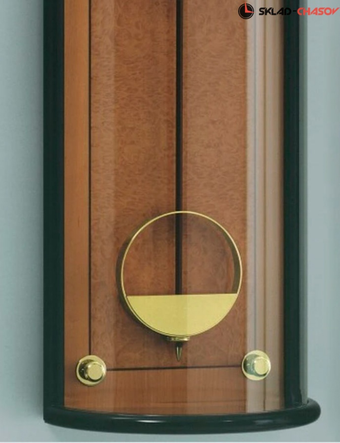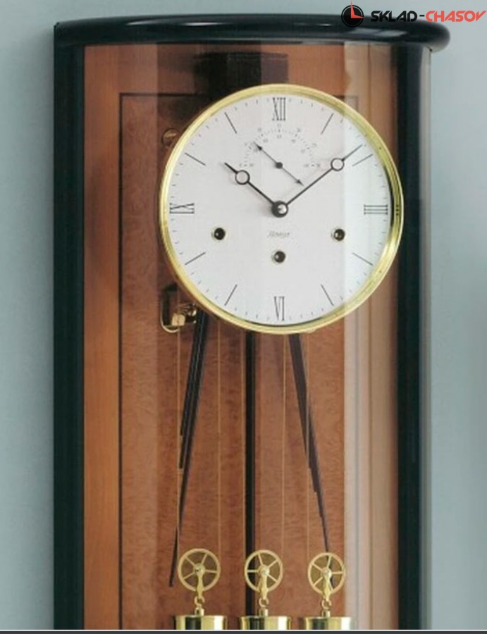 Секундная стрелка вынесена на дополнительный циферблат, полированные регулировочные винты по уровню стены выполнены из массива латуни.