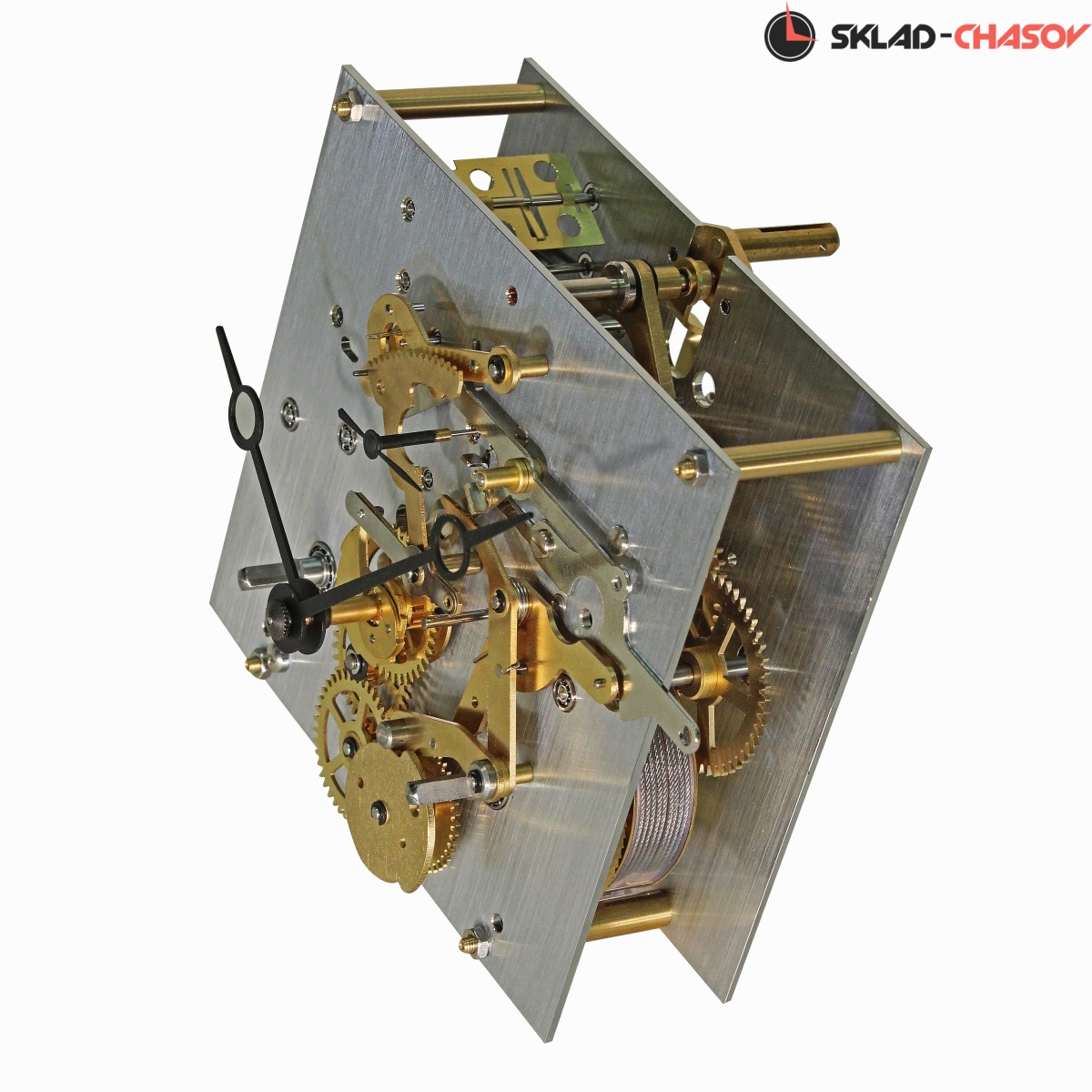 Новый кабельный механизм Kieninger caliber ZSR, работающий месяц, с традиционным получасовым ударом в спиральный гонг. Месячный срок службы в сочетании с весом каждого тросового привода всего 3,4 кг может быть достигнут только при высочайшей точности и использовании 30 высококачественных шарикоподшипников и 2 подшипников с синтетическими рубинами. Это также повышает долговечность. Чтобы обеспечить подачу энергии в процессе намотки, калибр „ZSR“ оснащен механизмом поддержания мощности. Разумеется, механизм обеспечивает правильную секундную индикацию и спусковой механизм в стиле Graham с анкерными поддонами Kieniramic®. Для индикации акустического времени используется классическая система звуковых сигналов и спиральный гонг. Приятная тишина ночью возможна благодаря проверенной и запатентованной системе автоматического отключения ночного времени Kieninger с 10:00 до 7:30 утра. Функция отключения в ночное время может быть отключена полностью. Шлифованные и хромированные пластины из цельной латуни с бриллиантовой огранкой по всему периметру корпуса подчеркивают изящество механизма. Все остальные компоненты механизма изготовлены из традиционной латуни и стали.