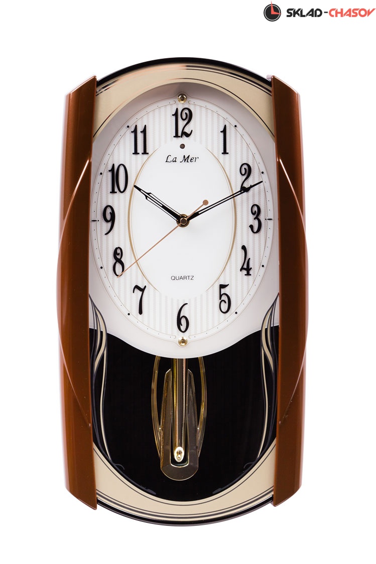 Настенные часы с маятником. 12 мелодий. Оснащены фотоэлементом, который автоматически переводит часы в ночной режим работы (в темноте мелодия не срабатывает).