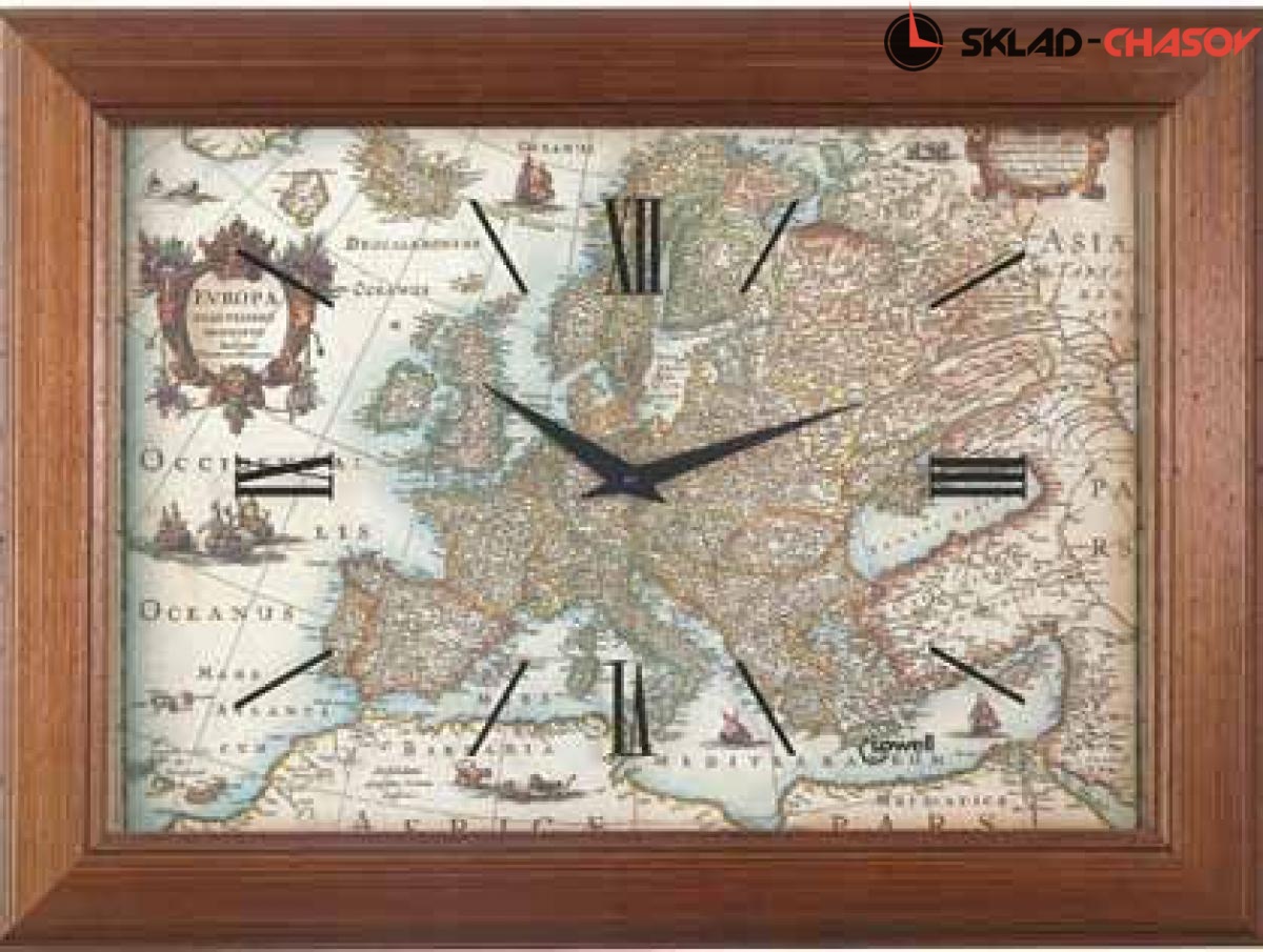 Настенные часы, размер корпуса: 60 см х 45 см, антикварная древесина, отделка - грецкий орех, лак