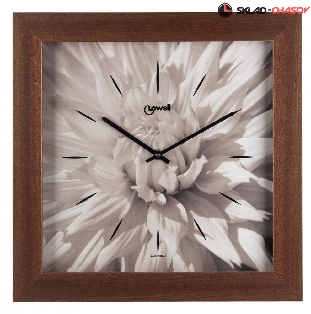 Настенные часы-картины Lowell 05448: имеют надежный кварцевый механизм UTS (Германия). Циферблат с черными рисками. Классические итальянские часы-картины с изображения цветка.