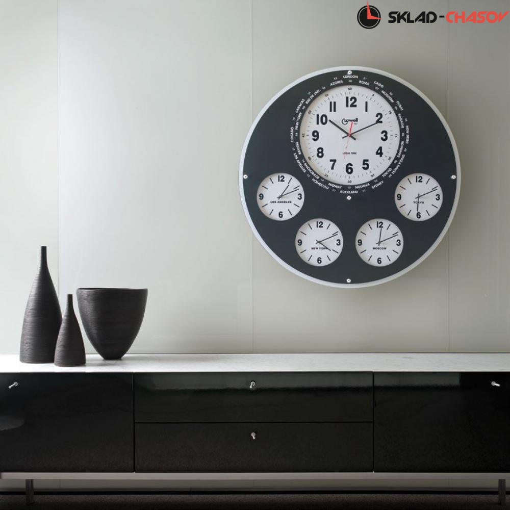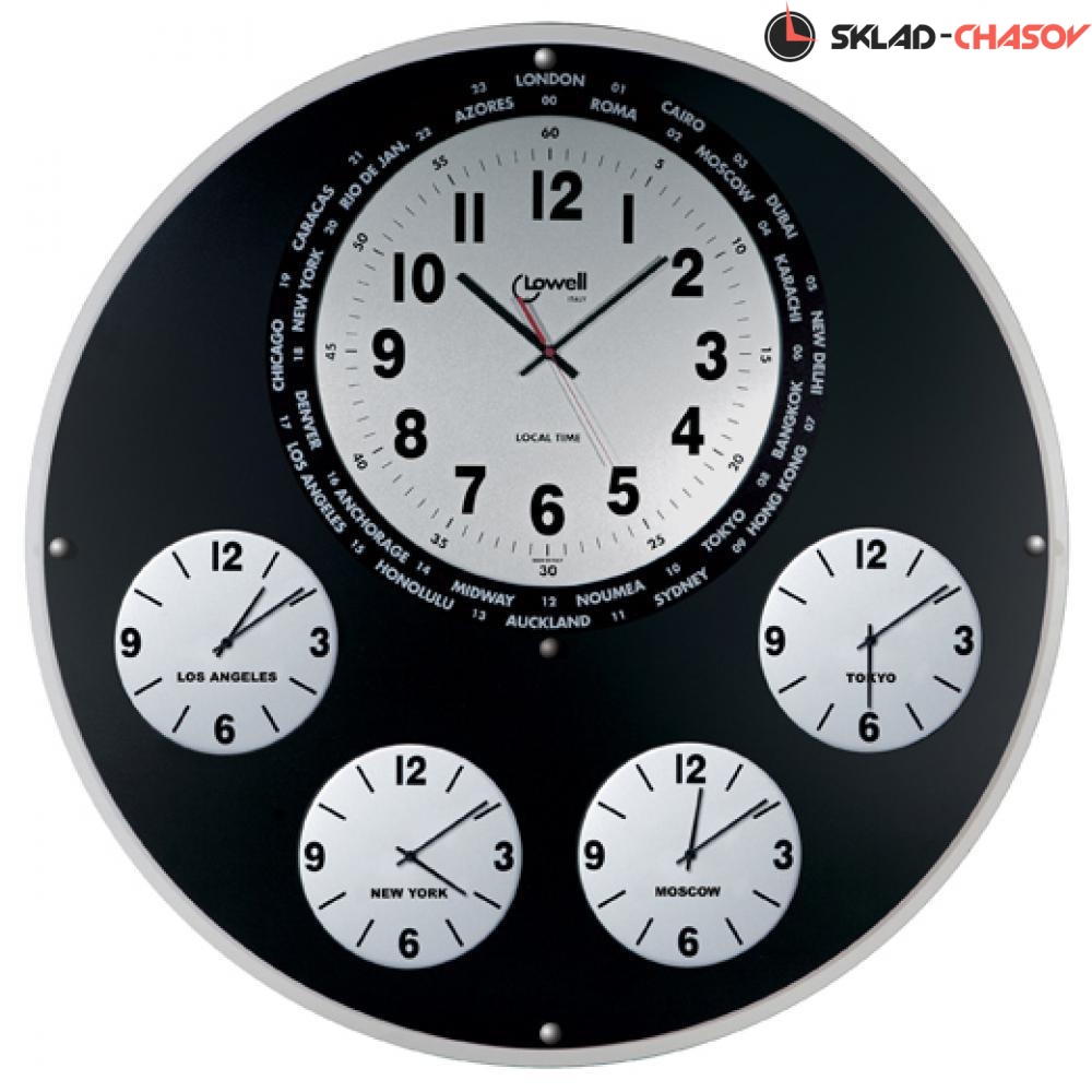 Один основной и четыре дополнительных циферблата показывают время разных часовых поясов.