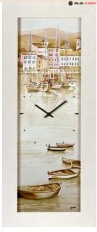 На прямоугольном циферблате полноцветное изображение тихой гавани.
