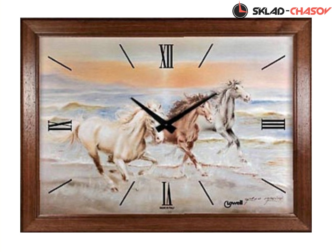 Циферблат украшен изображением лошадей.