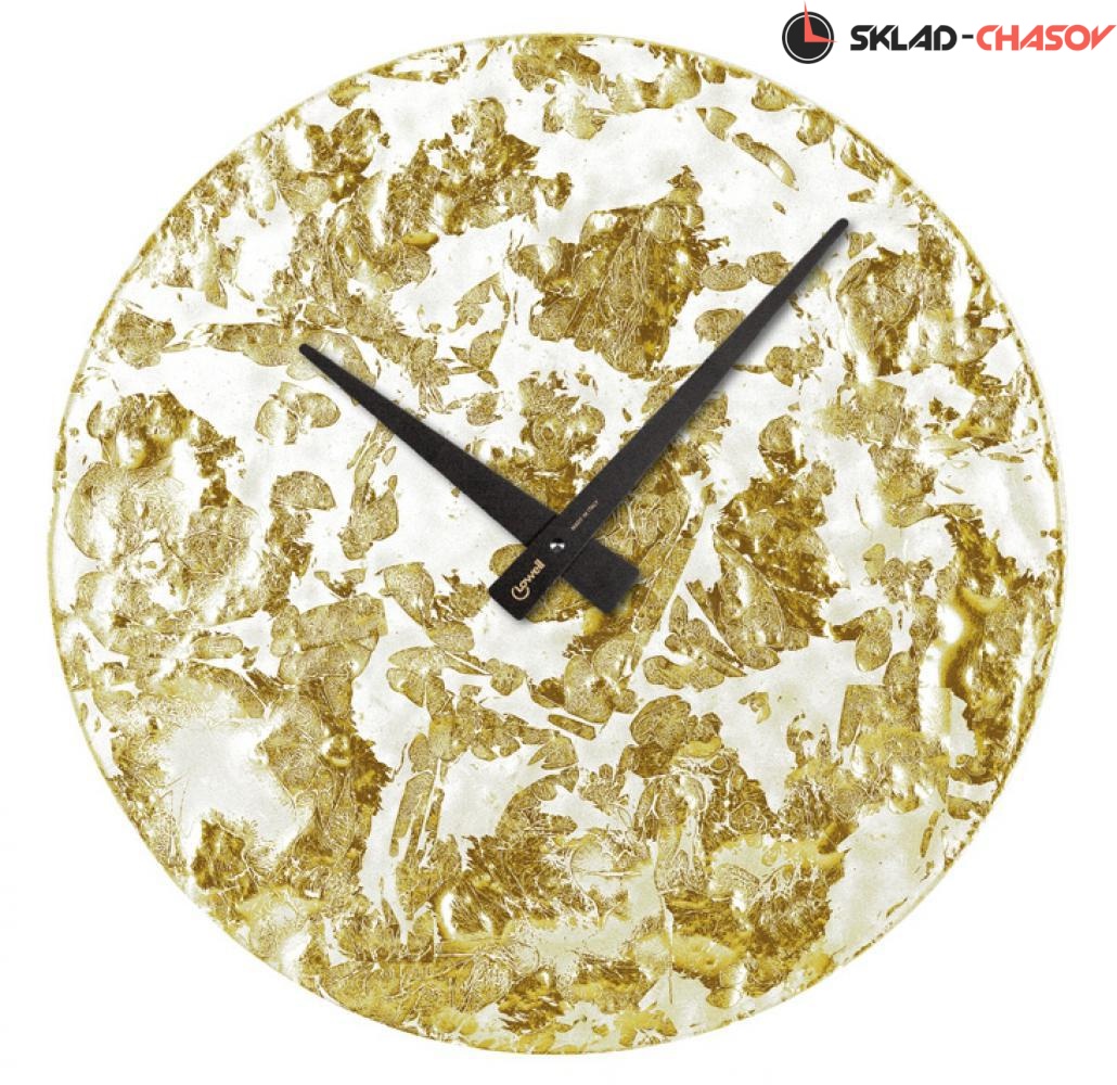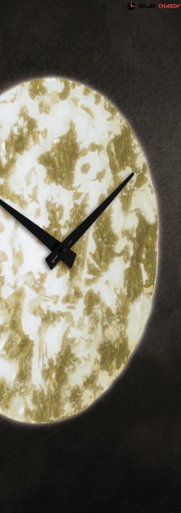 Стеклянный корпус с волнистой неравномерной поверхностью, с золотистыми вкраплениями и фотолюминесцентным покрытием.