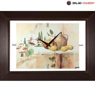 Настенные часы-картина из коллекции “Prestige” («Престиж»). Корпус часов изготовлен из массива дерева и отделан в темно-коричневом цвете. Часовые деления нанесены вручную на внутреннюю сторону стекла при помощи старинной техники сериографии. Кварцевый механизм UTS (Германия). Сделано в Италии.