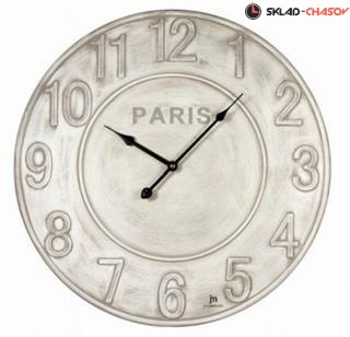 Корпус выполнен из МДФ, искусственно состарен. Рельефный циферблат.